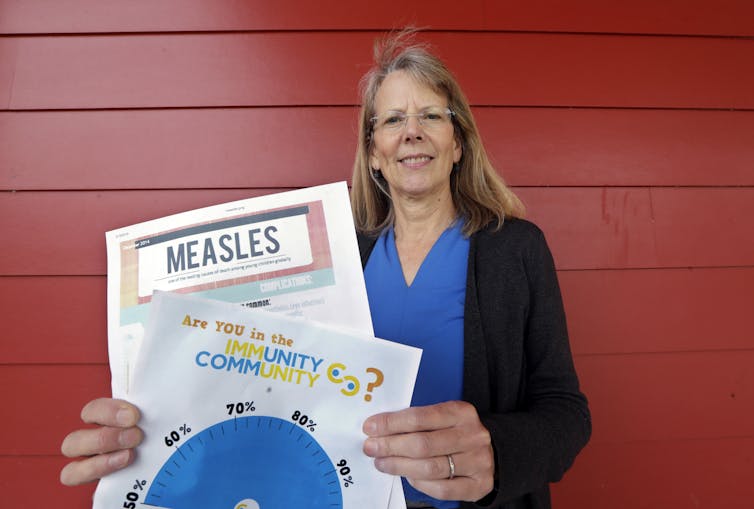 High school nurse Sarah Day has been advocating for getting kids their shots against a loud contingent of anti-vaccine parents in the close-knit community of Vashon Island, Wash. (Photo: AP/Elaine Thompson)